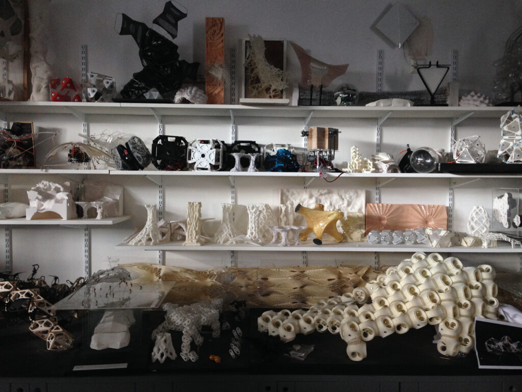 DRL的Studio歷經20年,輪替過6個以上的設計議程 (Design Agenda5)。其思想與實踐起初是來自90年代建築家們關於「場域」論述的延伸,以「集體的場域」(Corporate Fields)為題,在概念上建立DRL這個集體合作環境的自我認知,同時在教學上落實在全球化企業辦公建築的設計討論。自此DRL走向在自我建構的論述系統中演進的道路上。DRL的歷程約略以十年作為分野,整體演進與設計工具技術的發展關係密不可分。第一個十年的談論幾乎發生在純數位的環境之下,使用當時已可及的軟體互動式介面從事設計研究,加上動畫時間格的錄製,使得「隨時間而變化」(回應式環境Responsive Environment) 的動態建築論述得以連續的視覺化場景來呈現。第二個十年當中,數位製造技術開始普及,實驗工具的選項倍增,設計研究走出電腦螢幕,「實擬虛境」的主導性凌駕於「虛擬實境」之上,數位世界與物質世界的合成概念愈發地強烈。技術演進的同時,談論的尺度也由都市規劃(參數都市主義Parametric Urbanism)、建築的適應性與彈性(適應生態Adaptive Ecologies),到建築的型態與單元組構(原型設計Proto-Design),甚至從機械互動裝置的探索開始(行為的複雜性Behavioural Complexity),反過頭來用由下而上、以小見大的方式來回應網絡系統及橫向整合的當代議題。